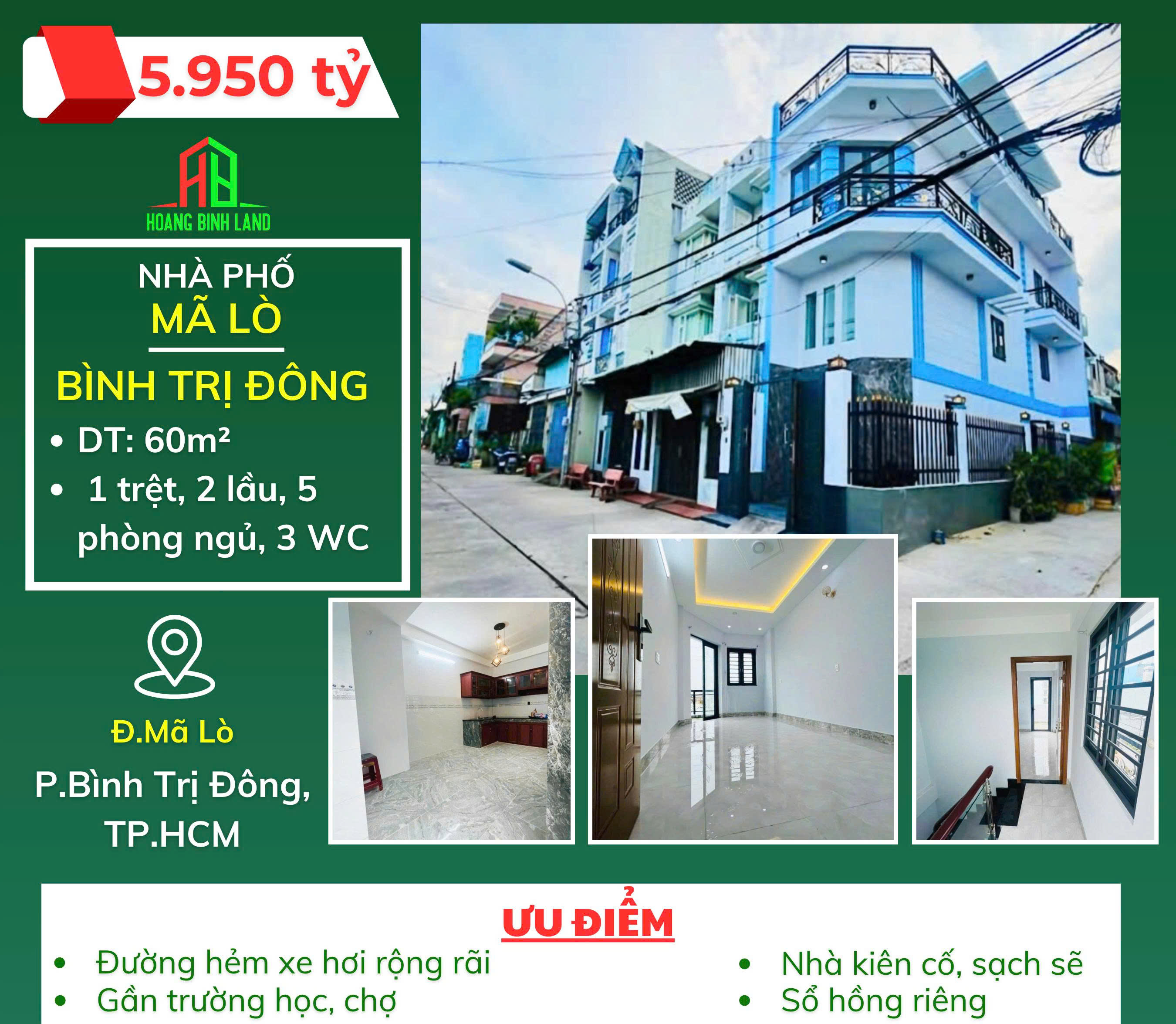 BÁN NHÀ PHỐ 2 MẶT TIỀN - GIÁ CHỈ 5,95 TỶ TẠI BÌNH TÂN